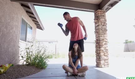 Young chick brutal guy fucks on weight